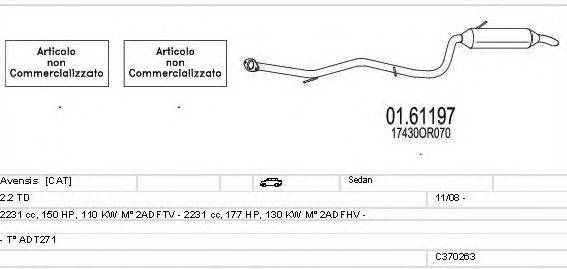 Глушник у зборі для TOYOTA AVENSIS седан (ZRT27, ADT27) Дизель 2.2 D-4D